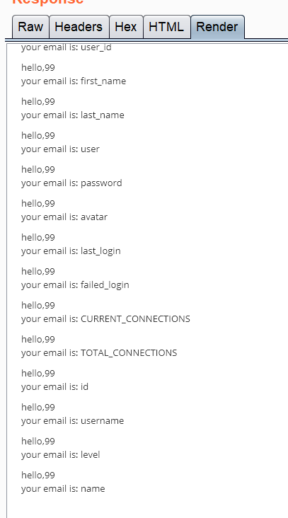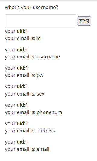 有了username就可以通过他给的表单获取对应email,所以就假设我们对phone、address更感兴趣,0x3a是冒号':',0x7e是~。