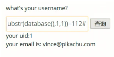 此时,条件语句where username='vince' and length(database())=7是True,也就是说数据库长度为7。