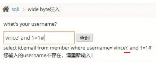 宽字节是在一些特定的编码,如GBK中才有的,编码将两个字节认为是一个汉字(前一个字符ascii码要大于128,才到汉字的范围)。addslashes函数为了防止sql注入,将传入参数值进行转义,将' 转义为',单引号失去作用。因此,我们需要将\给绕过,这样才可以加'号。
