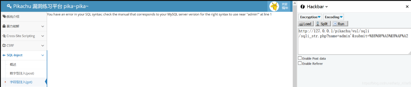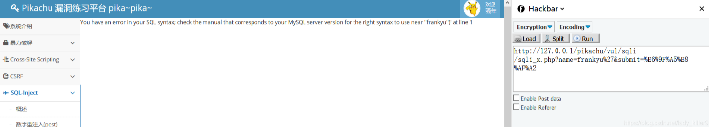 其实还是字符型,只不过需要两个字符去闭合,就是前面提到的(),sql语句类型下面这种,和前面的差不多。