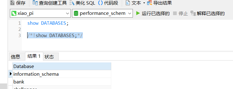 mysql扩展功能,在/*后加惊叹号,注释中的语句会被执行